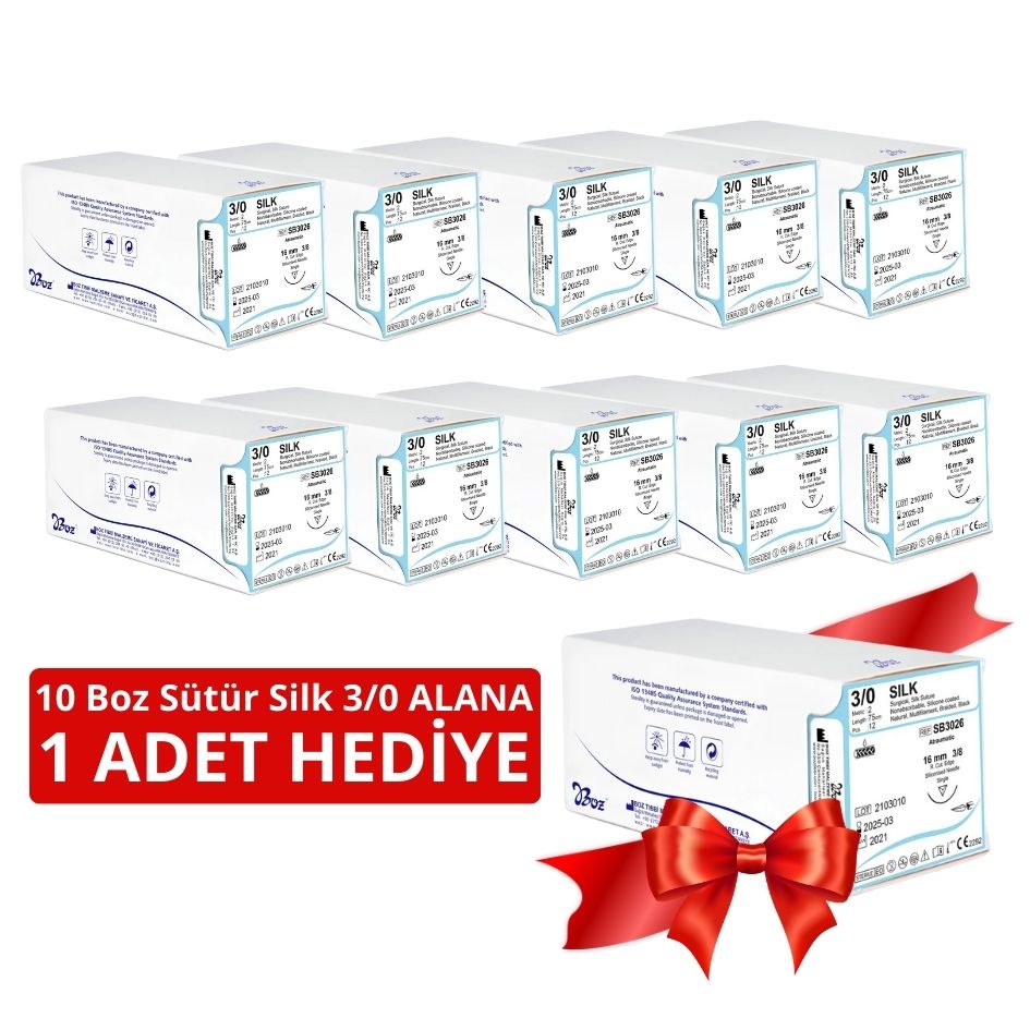 10Boz Sütür Silk 3/0 ALANA + 1 Adet HEDİYE