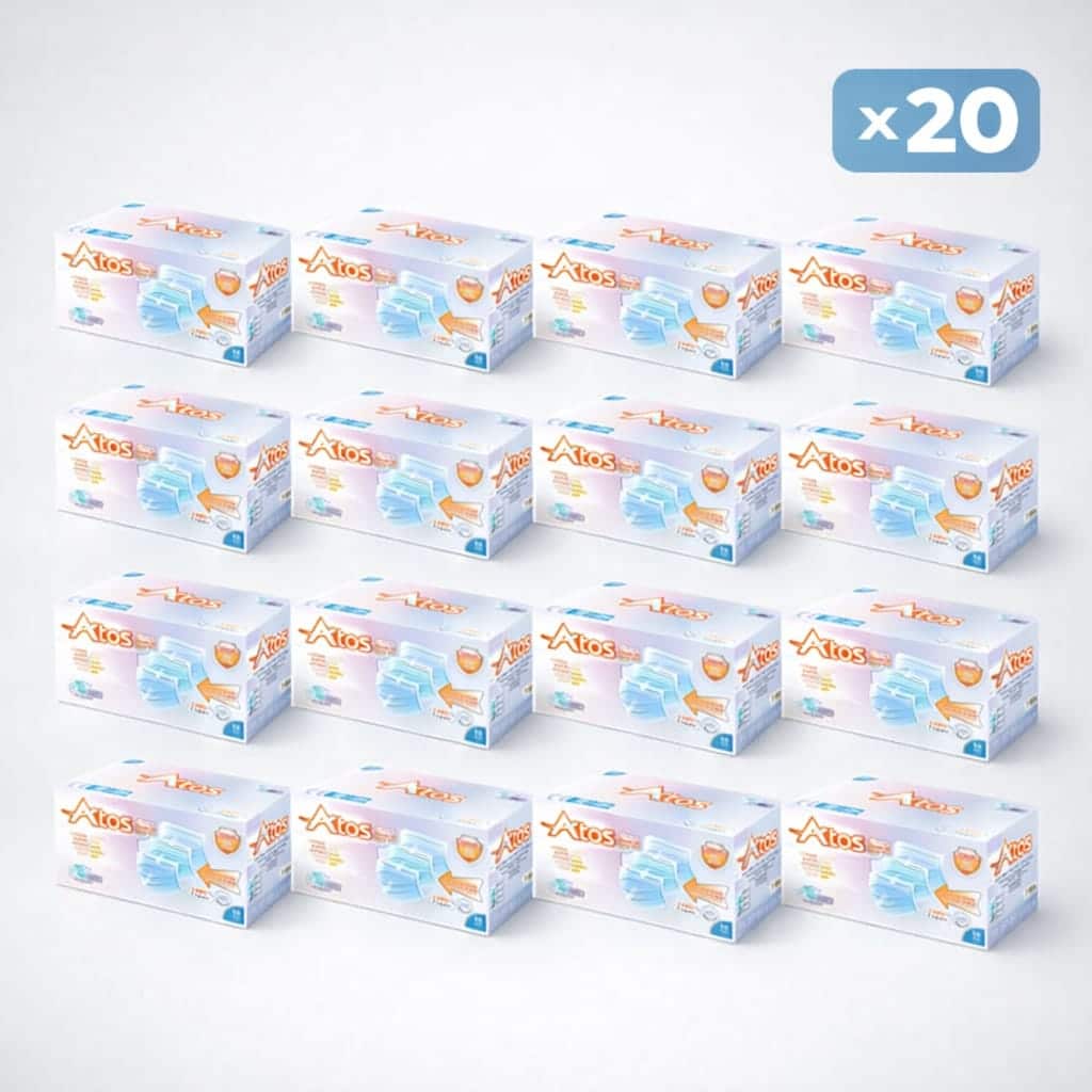 Atos Düz ve Esnek Lastikli Cerrahi Maske, hijyen ve güvenliğin önemli olduğu ortamlarda etkili koruma sağlayan yüksek kaliteli tek kullanımlık bir maskedir. 3 katlı yapısı ve meltblown filtre teknolojisi sayesinde bakteri, toz ve zararlı partiküllere karşı güçlü filtrasyon sunar.