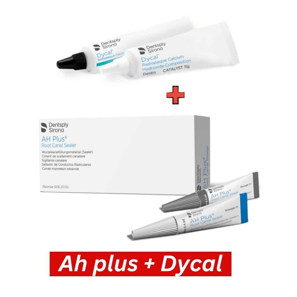 Ah plus + Dycal Root Canal Sealer Plus + Kalsiyum Hidroksit Set, endodontik tedavilerde kök kanal sisteminin temizlenmesi, dezenfeksiyonu ve doldurulması için kullanılan profesyonel bir kombinasyon settir.