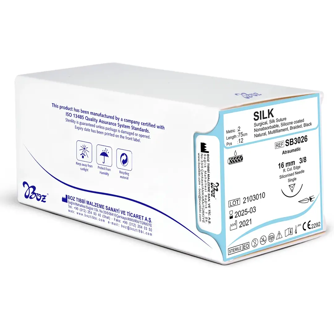 Boz sütür silk 3/0 , 4/0 , 5/0 20 3/8 Keskin (Δ) 75cm PGLA Emilemeyen Sütür 12 Ad./Pkt