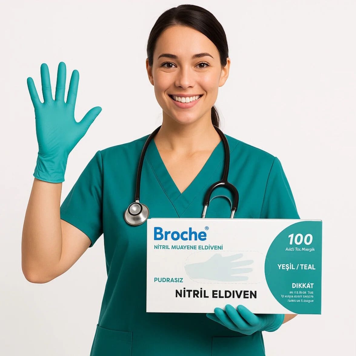 Broche Yeşil Nitril Eldiven XS 100 adet