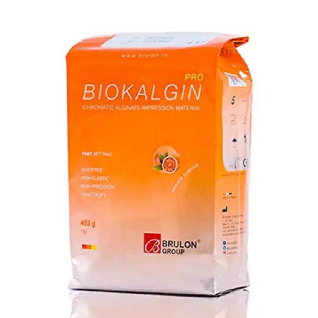 Yüksek kaliteli aljinat, hastanın diş yapısının ayrıntılarının gelişmiş yeniden üretimi için zenginleştirilmiş formül. BiokalginPro aljinat tozsuz, tiksotropik, boyutsal olarak kararlı, son derece elastiktir ve renk değiştirme efekti ile birleştirilmiştir. Ürünün raf ömrü üretim tarihinden itibaren 5 yıldır. Biokalgin Pro aljinat mükemmel biyouyumluluk gösterir. Hastalarda olası alerjik reaksiyonları en aza indiren doğal, gıda sınıfı maddelerin karışımı sayesinde. Bu nedenle genel klinik uygulamada uygundur. Lezzet: Portakal Meyvesi
