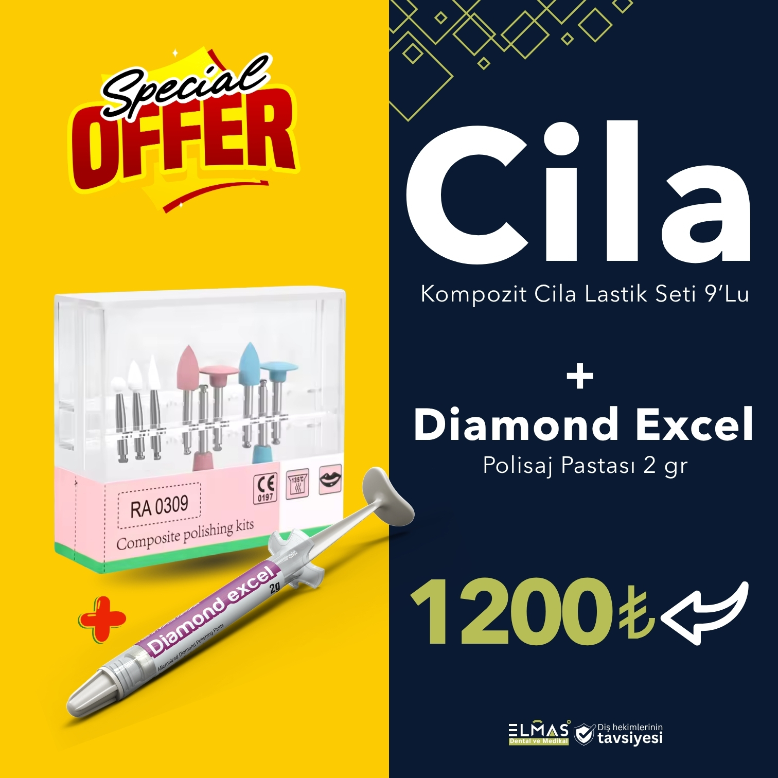 FGM Diamond Excel Polisaj Pastası + Kompozit Cila Lastik Seti (9’lu)