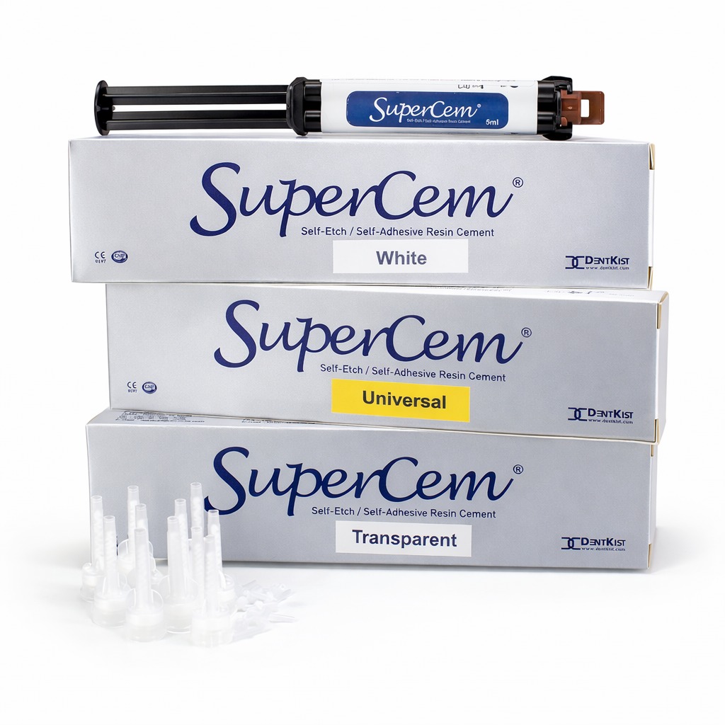 dual cure rezin siman, DENTKIST SuperCem, dental yapıştırıcı siman, zirkonyum siman, porselen yapıştırıcı, rezin siman, kron köprü simantasyon, dental bonding cement