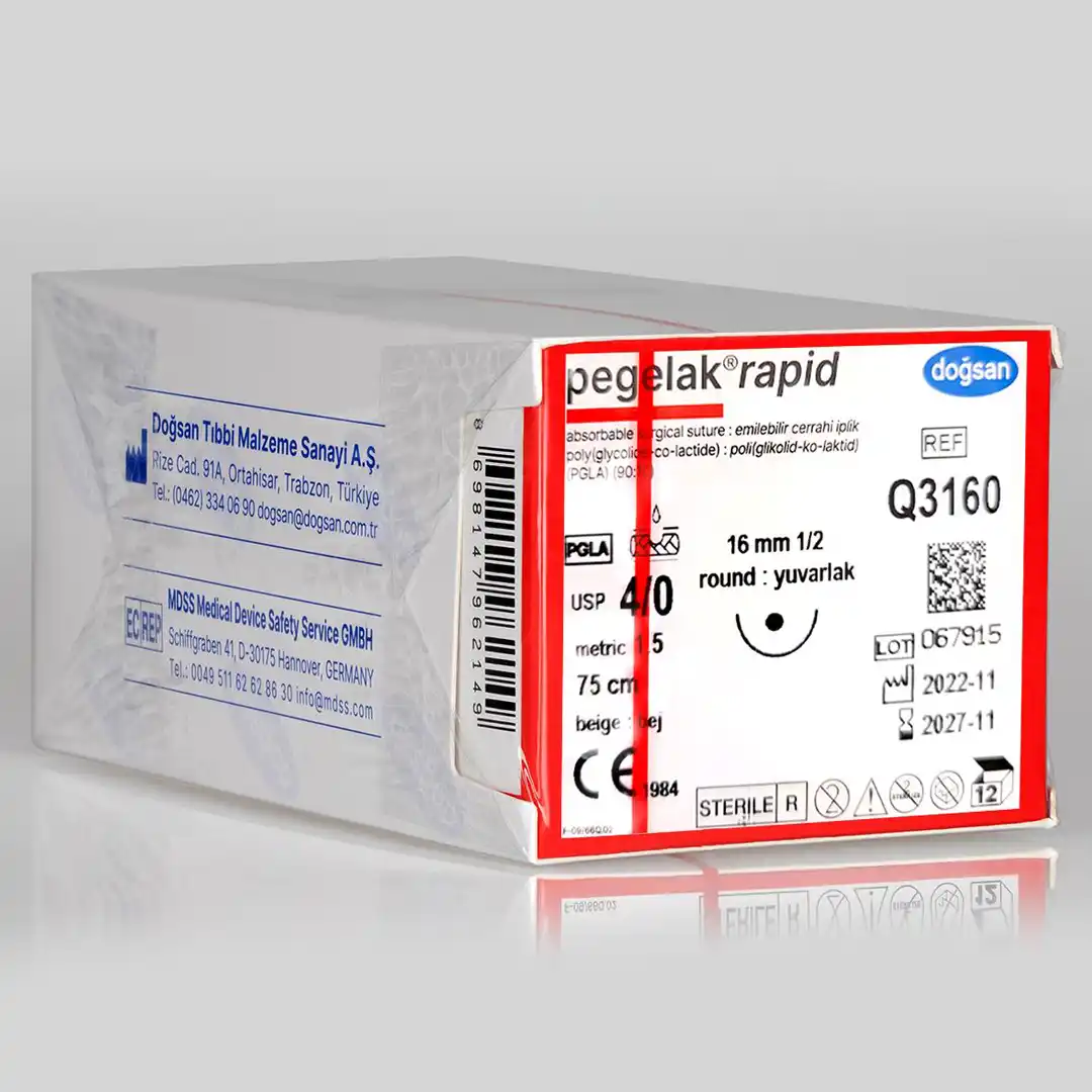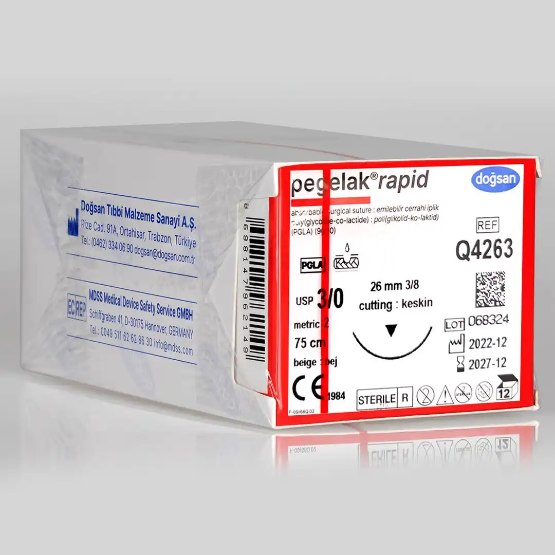Pegelak Rapid 3/0 16 3/8 Keskin (▼) 75cm PGLA Emilebilir Sütür 12 Ad./Pkt; Adlı ürün Cerrahi operasyonlarda kullanılması önerilir.
