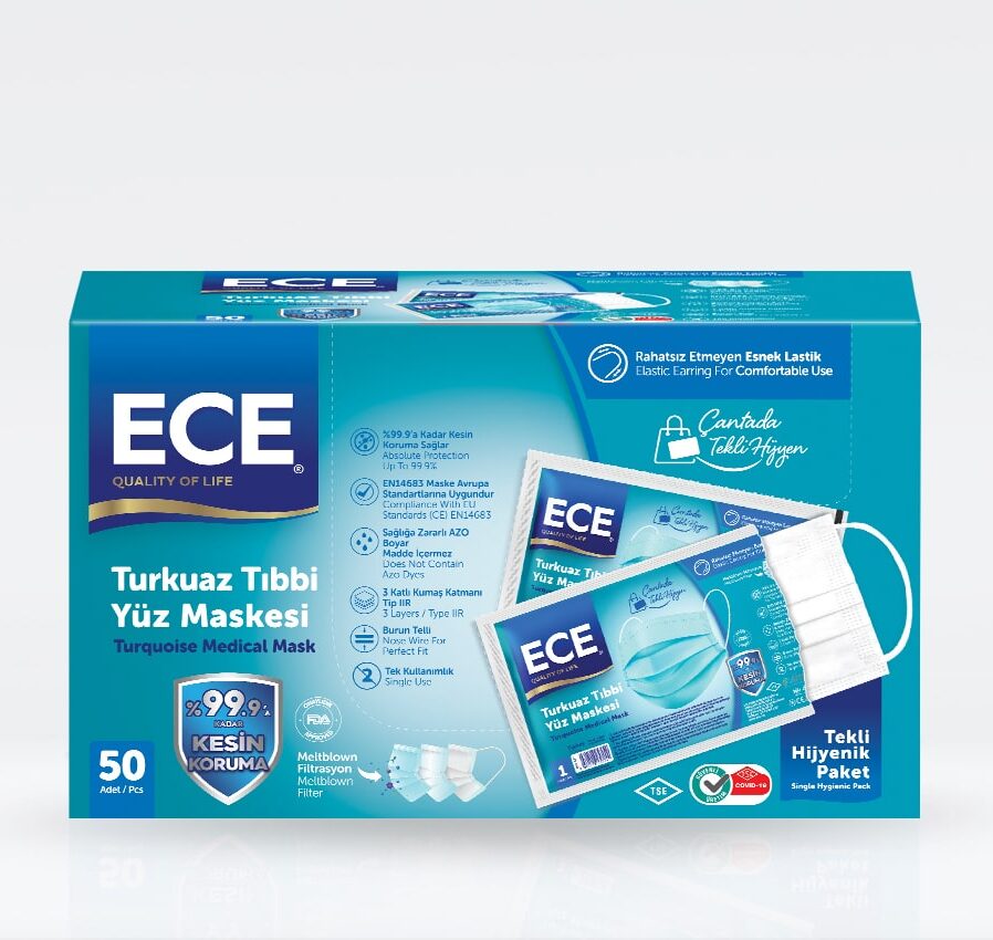 Ece Full Ultrasonik Tekli Paketli Meltblownlu Turkuaz 50’li Maske