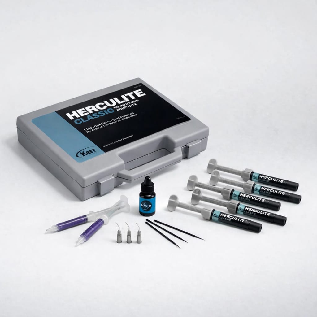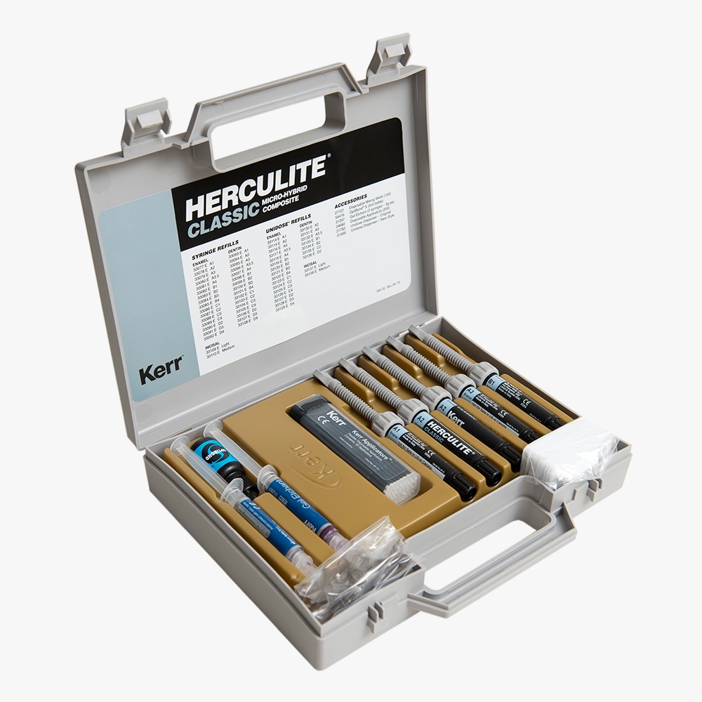 Renk skalası kullanılarak geliştirilen bir mikrohibrit kompozittir. Üstün uygulama özellikleri sayesinde Herculite Classic ile kolaylıkla anatomik şekillendirme gerçekleştirebilirsiniz. 20 yılı aşkın bir süredir Herculite Classic’in kanıtlanmış klinik etkinliği, uzun ömürlü estetik sonuçları ve mükemmel aşınma oranları, kompozitte güvenilirlik ve dayanıklılığın bir kanıtıdır. Herculite, sunduğu 38 opasite ile çok yönlülüğü en üst düzeye taşıyarak, şırınga ve tek kullanımlık formları ile her klinik vakanız için ayrı bir çözüm sunmaktadır.