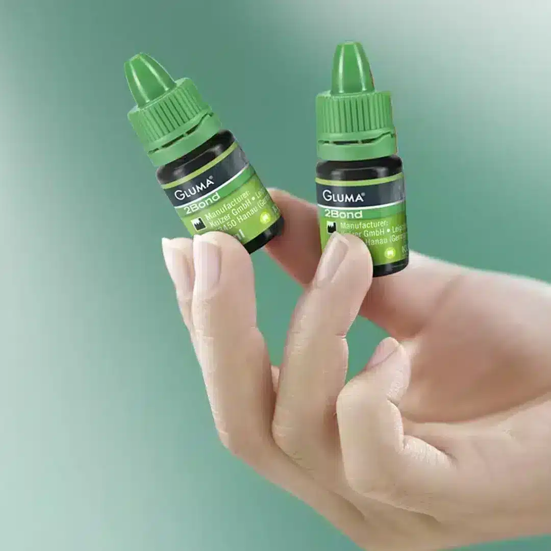 GLUMA® 2Bond – Tek katmanda primerleme, bondingleme ve hassasiyet giderme. GLUMA 2Bond’un kullanımı basit ve kolaydır: GLUMA Etch ile pürüzlendirme yapıldıktan ve yıkandıktan sonra adeziv ile diş yüzeyi arasında güçlü çapraz bağlar oluşur. GLUMA 2Bond yeni formülü ve özel viskozitesi sayesinde dişin yüzeyinde hareketsiz kalır. Sonuç olarak, minenin ve dentinin yüzeyinde mükemmel ve dayanıklı restorasyonlar garanti eden homojen ve parlak bir katman oluşur. Geniş uygulama alanı GLUMA 2Bond, günlük muayenehane rutininde konan endikasyonların hemen hepsi için ilk tercih edilen üniversal bağlantı sistemidir.