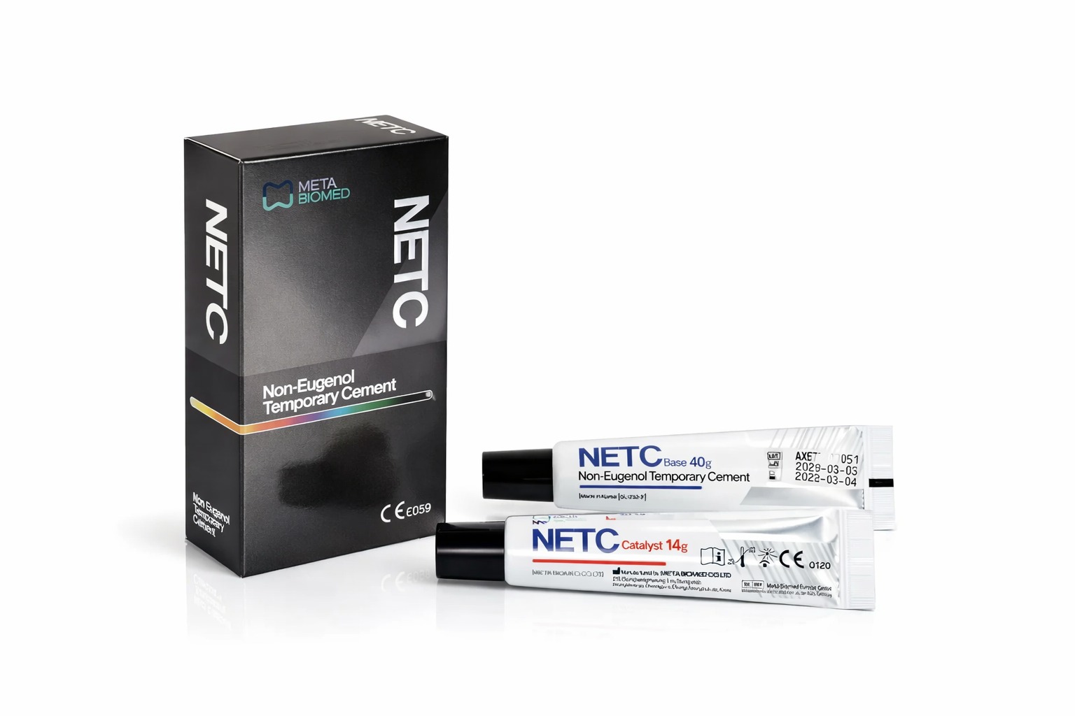 META BIOMED Netc Geçici Yapıştırıcı, diş hekimliği kliniklerinde hızlı, güvenilir ve hasta dostu geçici simantasyon çözümleri sunar.