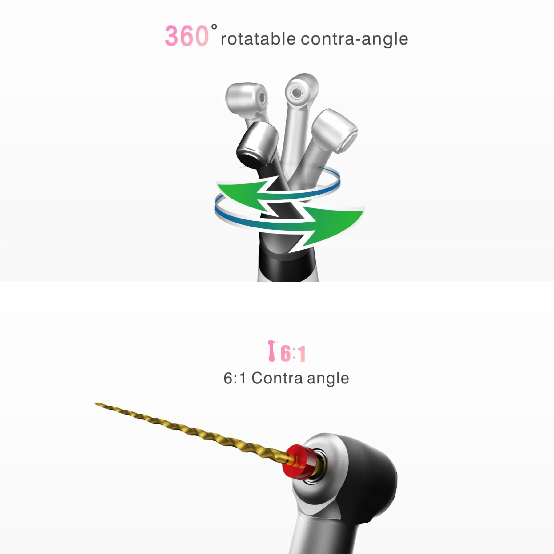 Cihaz, 8 mm’lik kafa yapısı ve 360 derece dönebilen 6:1 anguldruva sayesinde hasta ağzında ergonomik çalışma sağlar. Ürünün yazılım sistemi renkli, led ekran endodontik motor üzerinde olup hem görsel hem de sesli uyarısı sayesinde takip edilmeye uygundur.Sistem yazılımında 23 adet orginal kanal eğesi, tork ve hızları ile sisteme kayıtlıdır. Ayrıca auto start, slown down, auto stop ve reverse hareketleri için modlar mevcuttur.