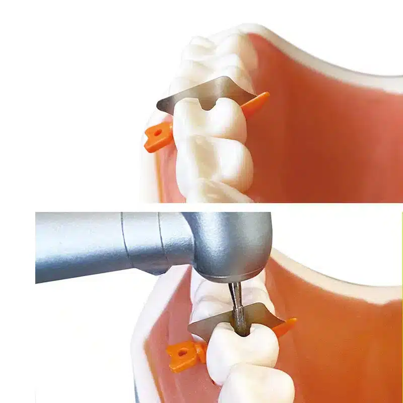 3. Bitişik dişleri korumak ve dişleri aynı anda bölmek için deliği hazırlarken bitişik diş koruma şekillendirme parçasını yerleştirmek daha uygundur.