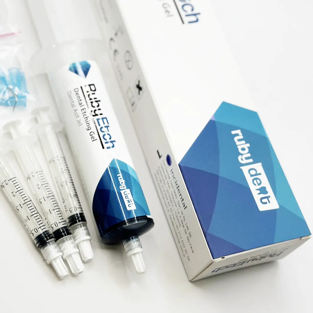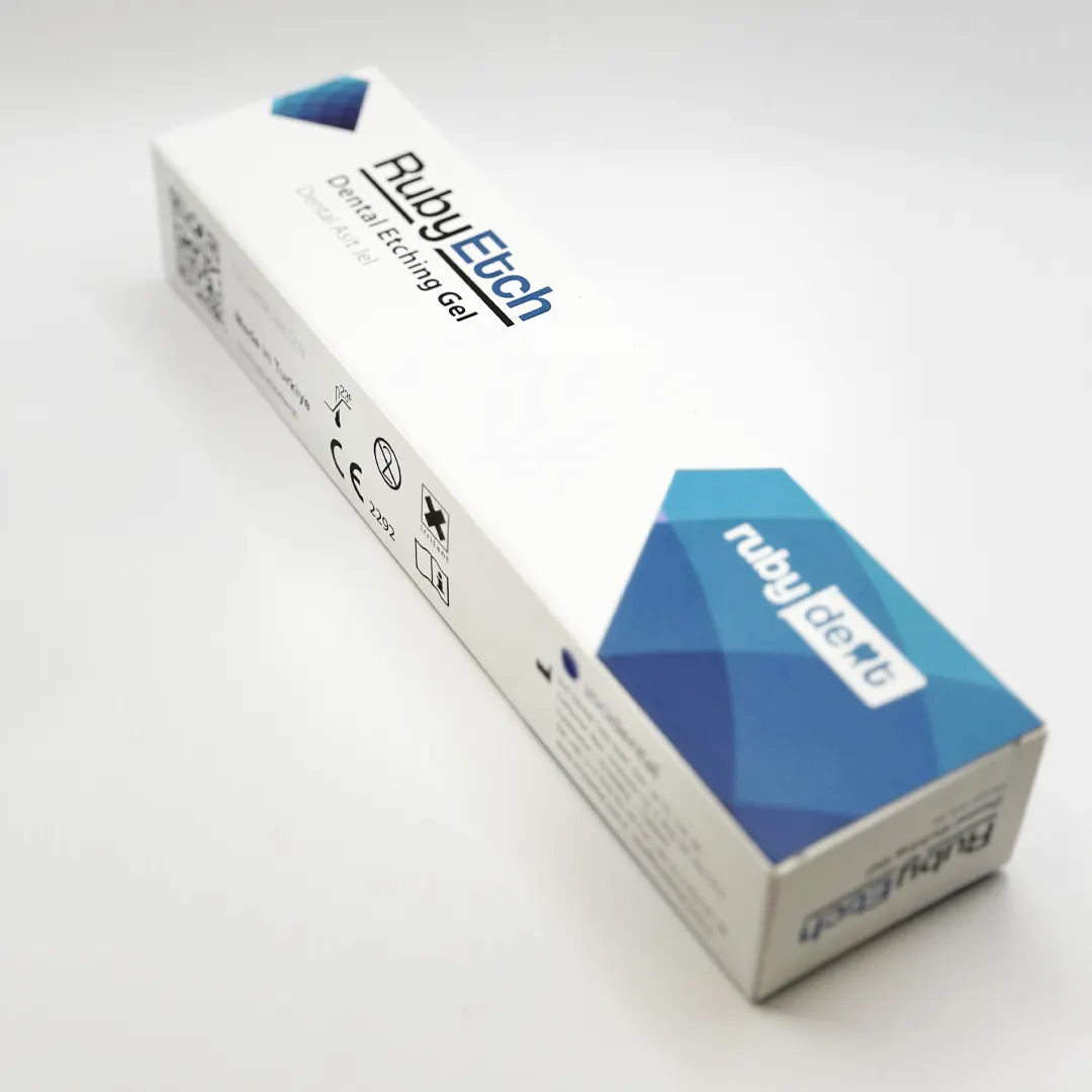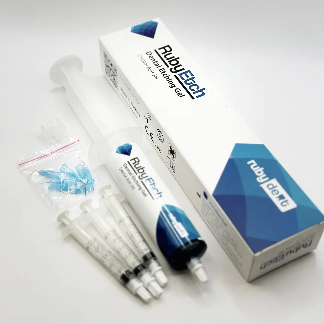 Ruby Etch, %37 orto-fosforik asitli aşındırma jelidir. 3 ml’lik ve 50 ml’lik şırıngada paketlenmiştir.