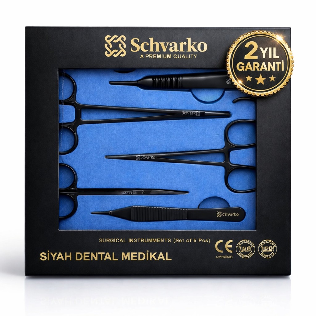 Siyah titanyum plazma kaplı cerrahi set, diş hekimliği ve medikal operasyonlarda maksimum performans ve hijyen sağlamak üzere tasarlanmıştır. Modern kliniklerin ihtiyaçlarına uygun olarak üretilen bu set, yüksek dayanıklılık ve uzun ömür sunar.
