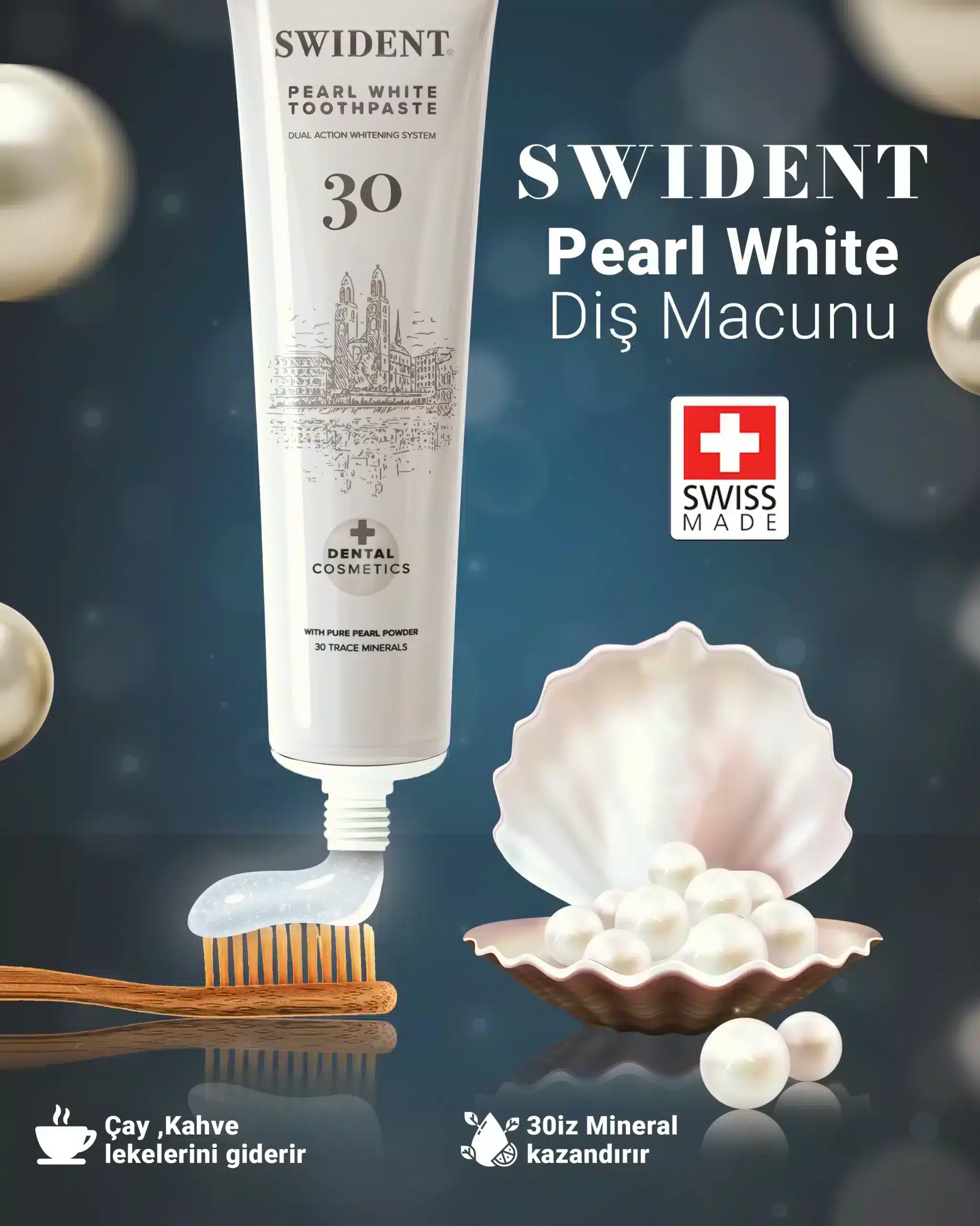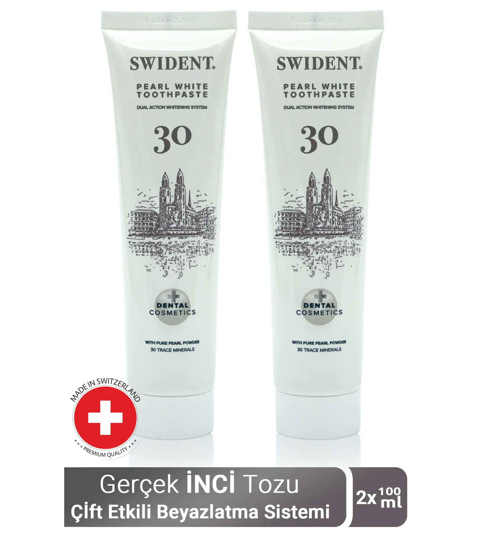 - üstün Isviçre Teknolojisi ve inci tozuile üretilen Swıdent pearl white