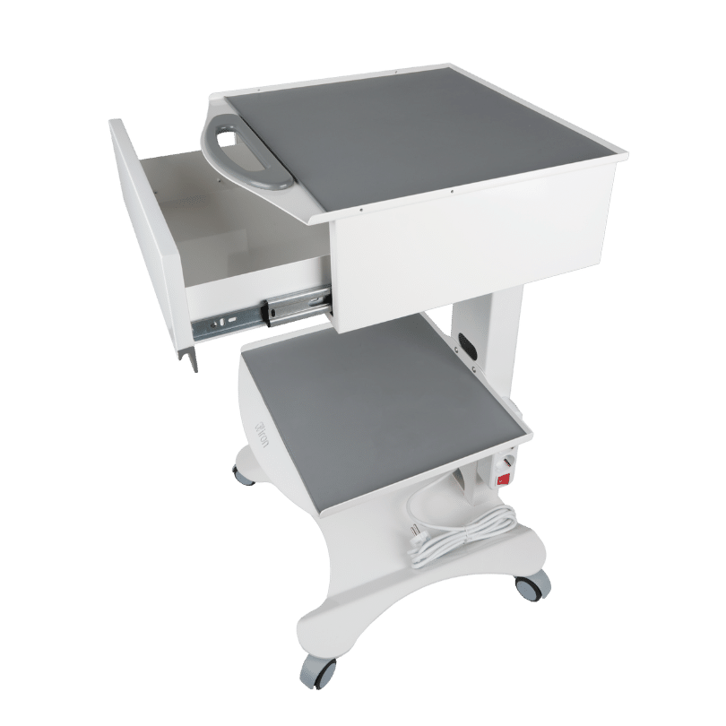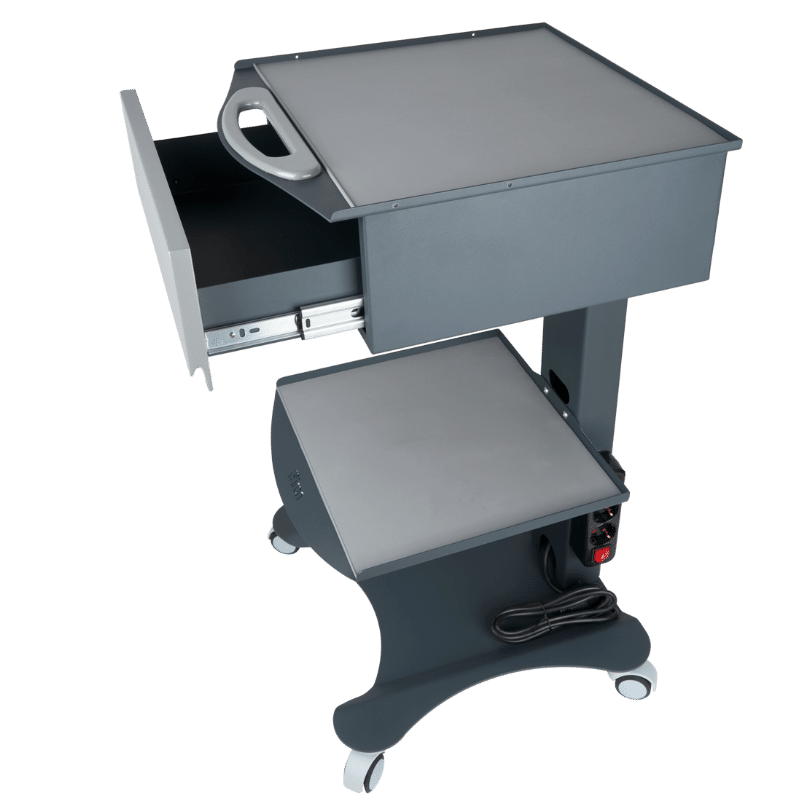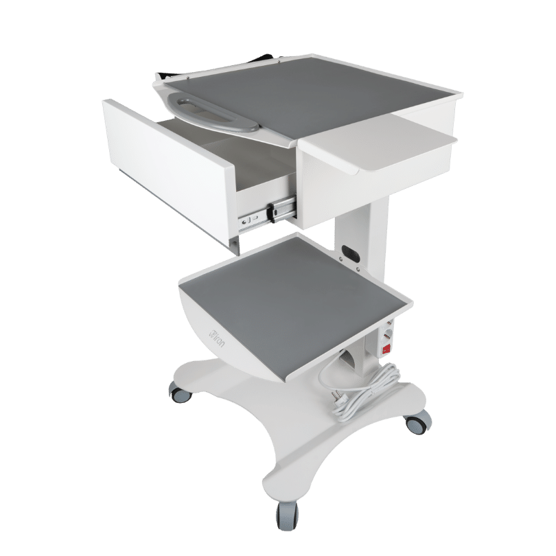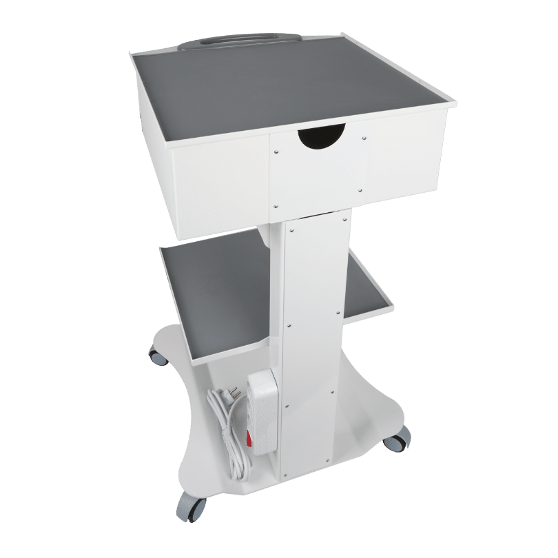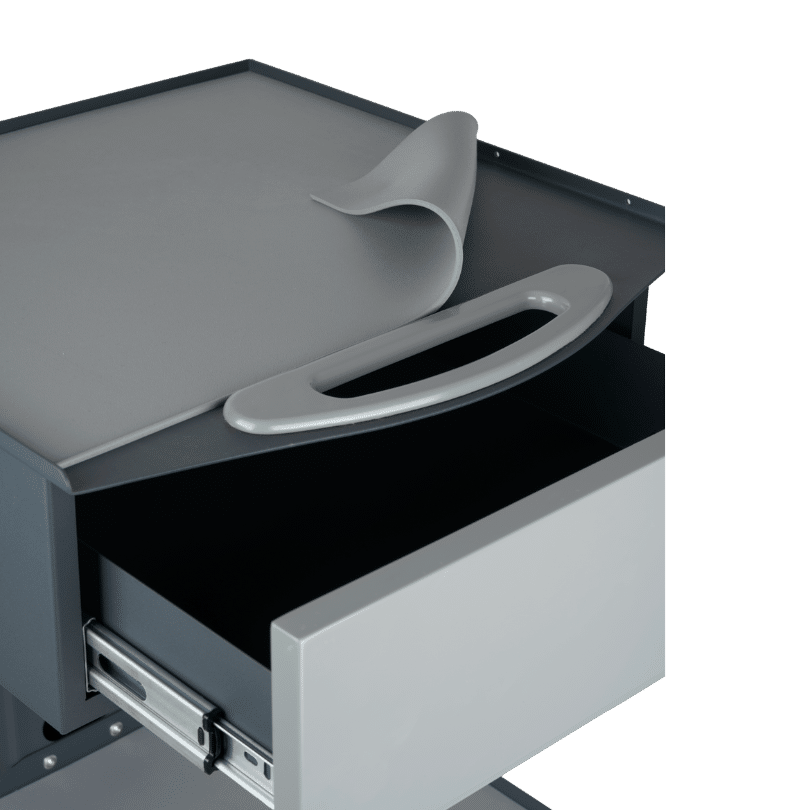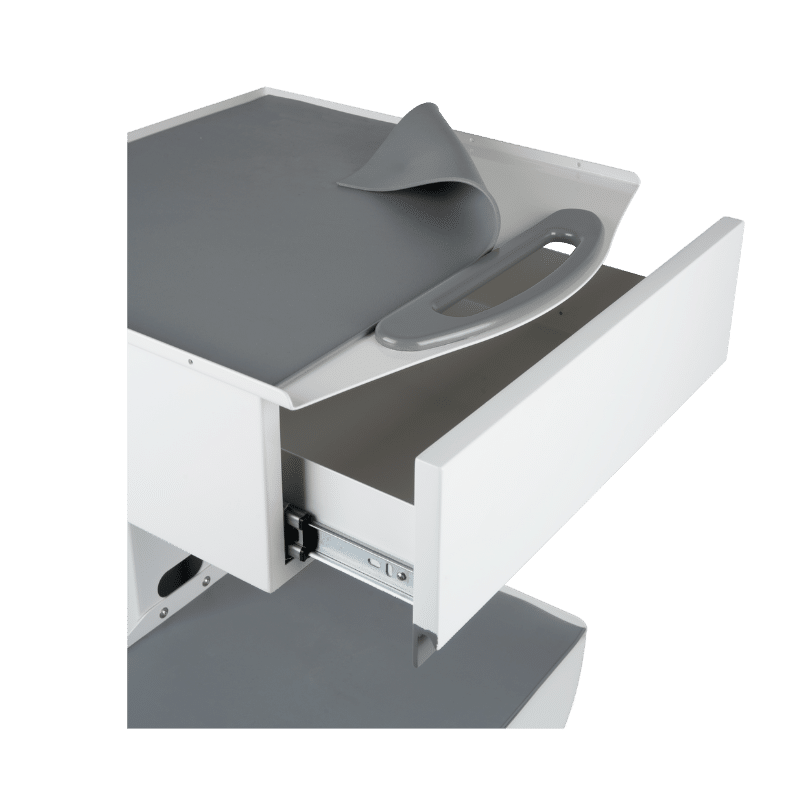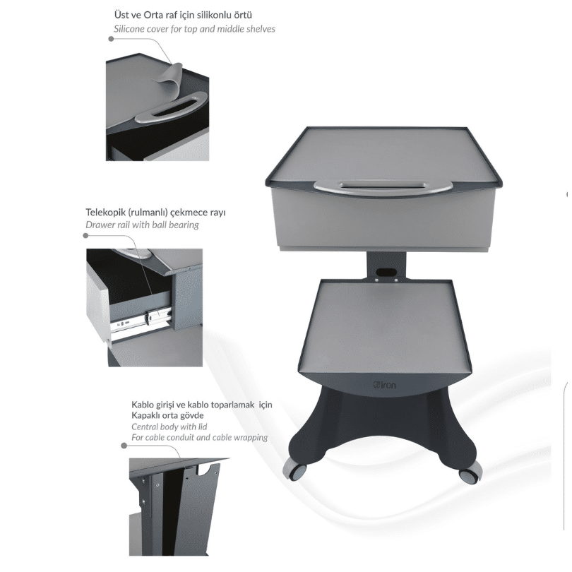 Şık tasarımıyla dikkat çeken HSC-01, işlevselliği ön planda tutarak sağlık profesyonellerinin tüm ihtiyaçlarında ideal ve kaliteli bir seçenek olarak öne çıkıyor. DKP Sac kullanılarak üretilen model, her türlü darbeye karşı dirençli yapısı ve yüksek kalitesiyle sağlamlık açısından uzun ömürlüdür. Geniş depolama alanı sunan tek çekmecesi, hijyenik silikon örtüsü, entegre prizi ve sessiz tekerlekleri ile klinik ortamlarında pratiklik ve düzen sağlar. Özel akrilik lake çekmece kapağı şıklık katarken, demonte tasarımı kolay montaj imkanı sunar.