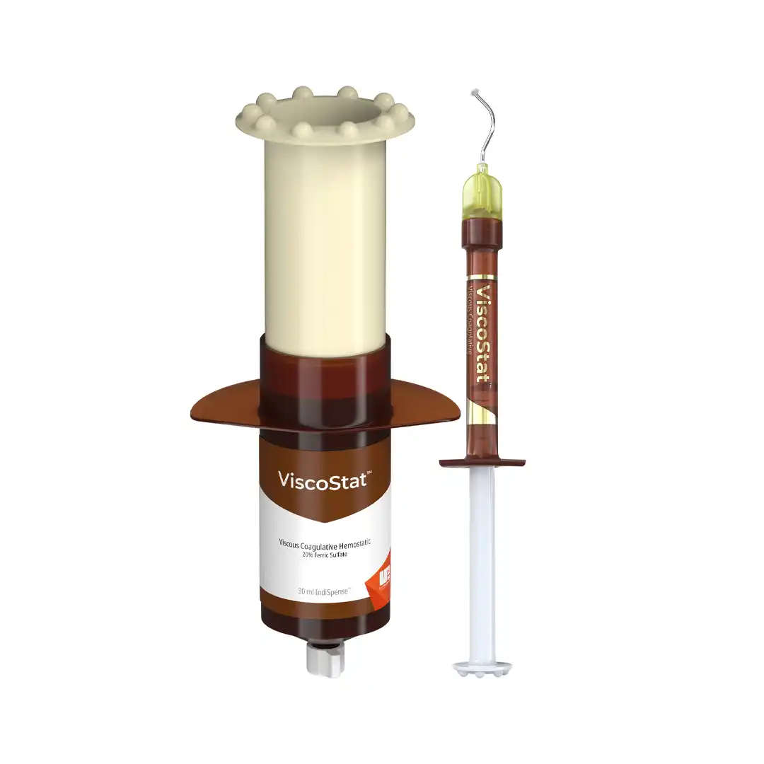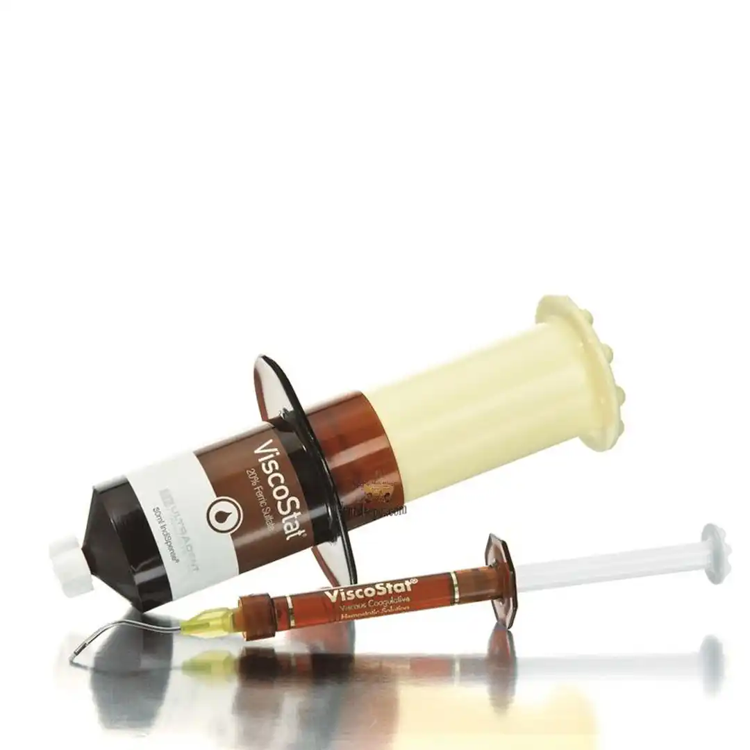 ViscoStat hemostatik, viskoz ve sulu bir solüsyon içinde inert bağlayıcı ajanlara sahip, %20 ferrik sülfat eşdeğeri bir hemostatik ajandır. Asidik aktiviteyi sınırlayan ve yumuşak ve sert dokulara nazik olmasını sağlayan patentli, dumanlı silika içerir.