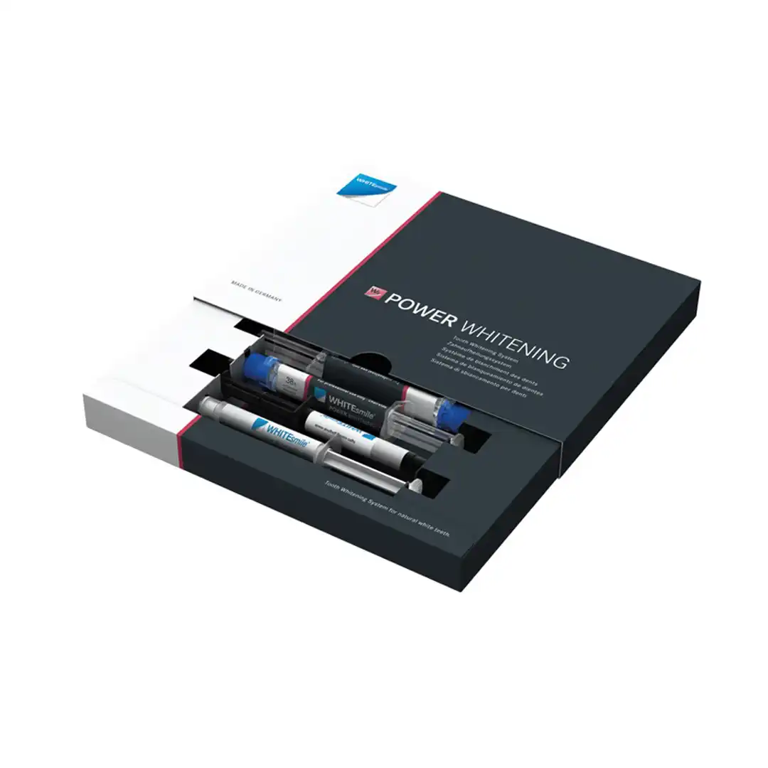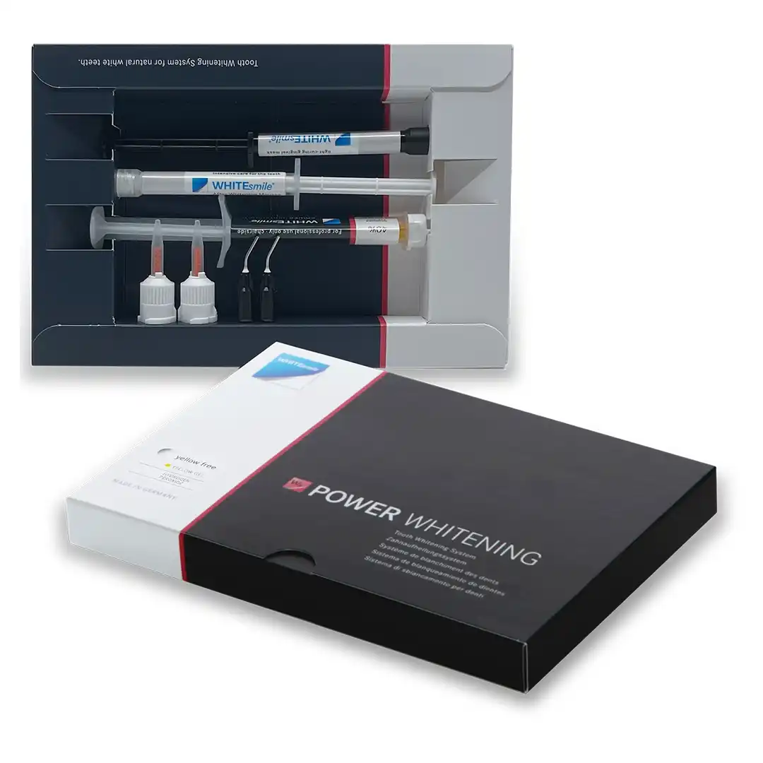 1×2,5ml Power Whitening YF %40 Hidrojen Peroxide (%32 mixed), 1×1,5 gr Gingiva-Protector, 1×1,2 ml After Whitening Mousse