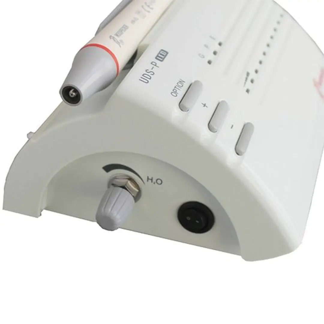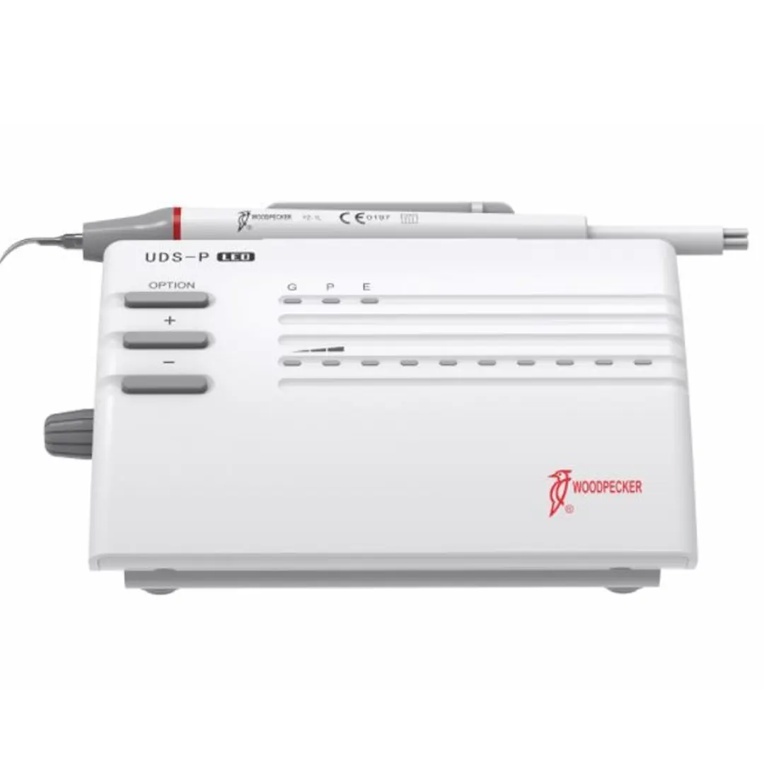Woodpecker tarafından üretilen Ultrasonik Scaler UDS P-Led , makinenin her zaman en iyi frekansta çalışmasını ve işlevlerini yerine getirmesini sağlayan otomatik bir frekans izleme sistemi özelliği ile genel, periyodik ve endo olarak üç farklı modda çalışan çok fonksiyonlu bir ölçekleyicidir. sürekli. Başlık çıkarılabilir ve 135 ℃ yüksek sıcaklığa ve 0.22MPa basınca otoklavlanabilir.